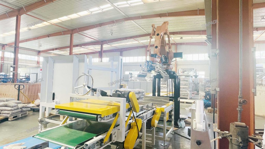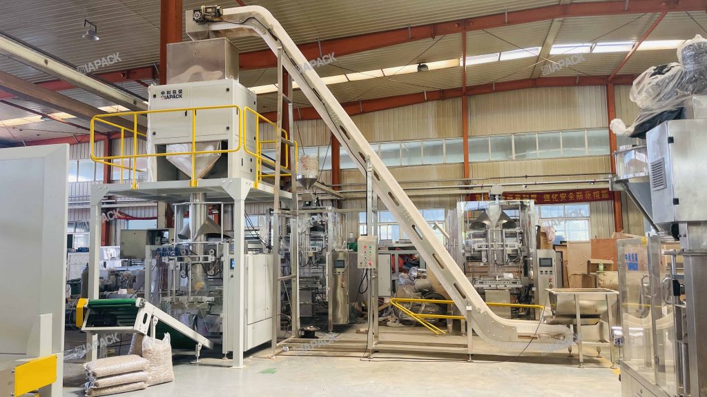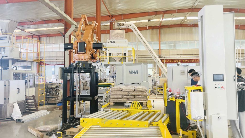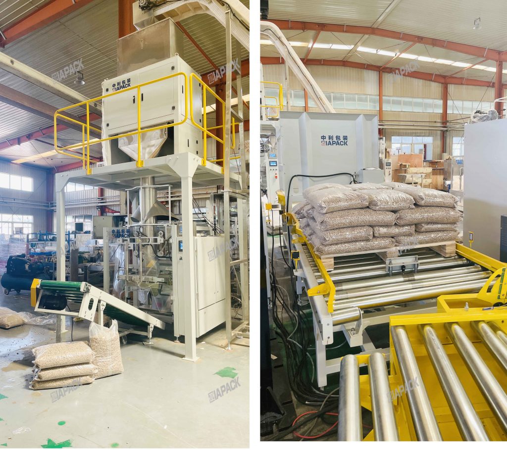 近日,我公司如期建成一套全自动15公斤木颗粒称重、制袋包装、码垛生产线。经过机械工程师和软件工程师的联合测试,该机器于8月4日发往目的国韩国。