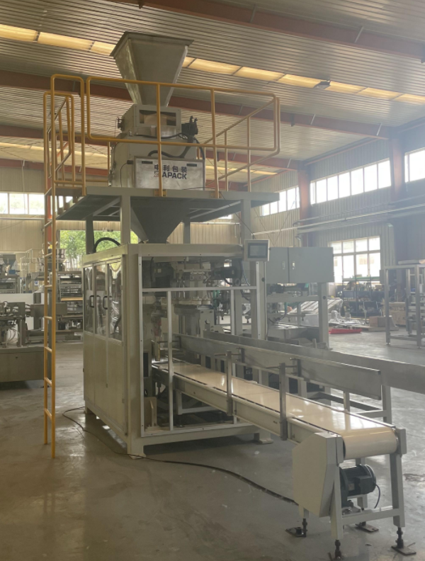 本机适用于大编织袋或牛皮纸袋或PE膜袋包装颗粒状物料,包装重量范围为25kg~30kg。