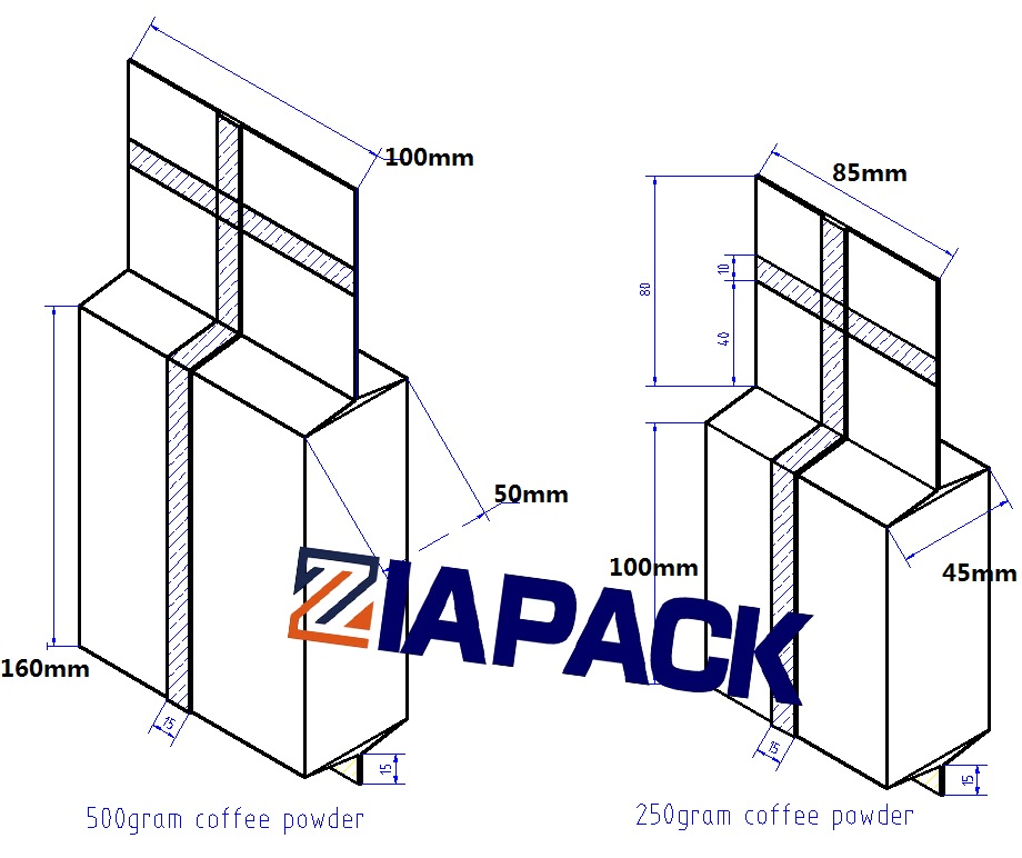 本机包括ZL520立式制袋包装封口机1台、ZL2000螺旋计量机1台、ZL100V2双真空室包装机1台、输出输送机1台,具有制袋、产品充填、清袋功能。和抽真空。可以选择更流行的热转印打码机在咖啡砖真空袋上制作日期编码。该机器广泛用于包装食品药品化学品和其他粉末或小颗粒产品。如咖啡粉、酵母粉、小麦粉等。整机采用内抽抽真空的方式抽真空。真空度高,包装速度快,可达8袋/分钟。成品非常漂亮,有保质期长。