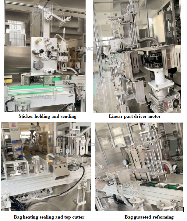 本机专为制作顶部贴标的插角袋而设计。装满产品的袋子落在本机上后,本机将提袋,经过一次袋口折叠,然后贴标。机器框架由SUS304 .PLC及触摸屏采用西门子品牌,气动元件采用SMC品牌,主要电器元件采用欧姆龙和施耐德品牌。本机与自动包装机配合使用,达到成品袋顶贴标。本机可自动达到功能标签分离,标签发送。标签检测器和标签压合。