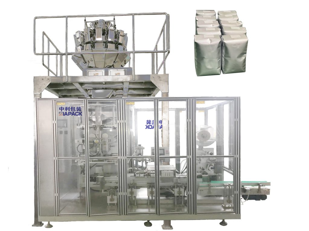 整条线包括一台vffs制袋灌装封口机一台顶贴袋包装机一台重量检查缓冲输送机一台收缩膜包装机整机可自动完成谷物称重制袋封口贴和整经。有一个额外的可选功能袋真空可以添加到该单元机器上。