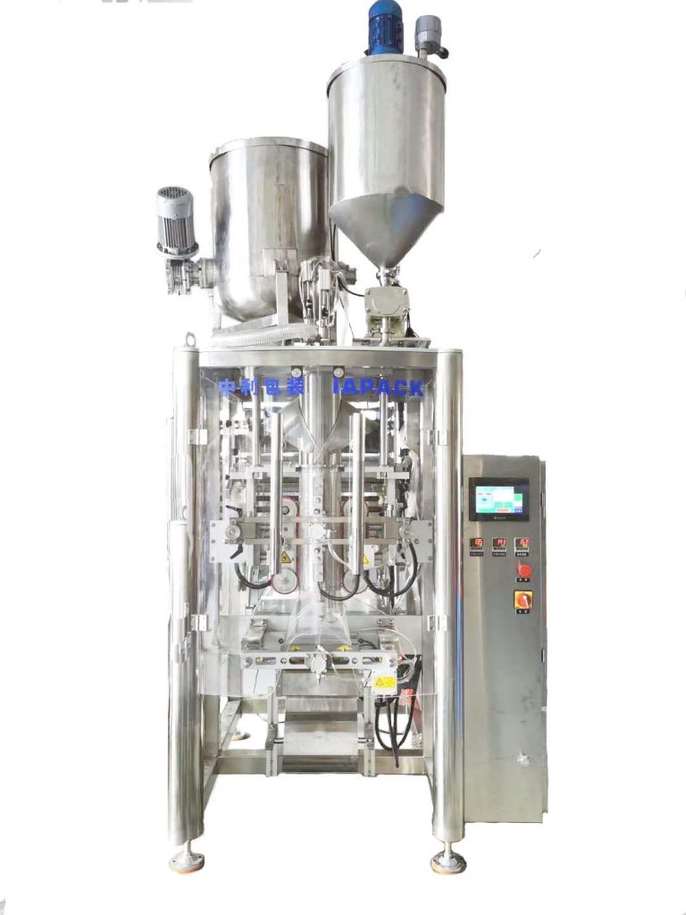 该装置是为满足流体和粘性产品的需求而开发的。机组由注浆机和包装机组成;包装机结构简单,操作方便;本机集制袋、充填、封口、计数功能于一体。采用伺服电机拉膜,具有自动纠偏功能。