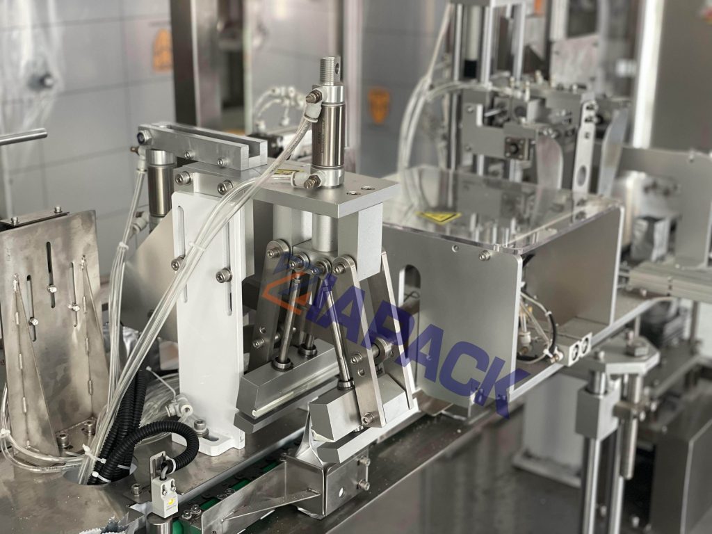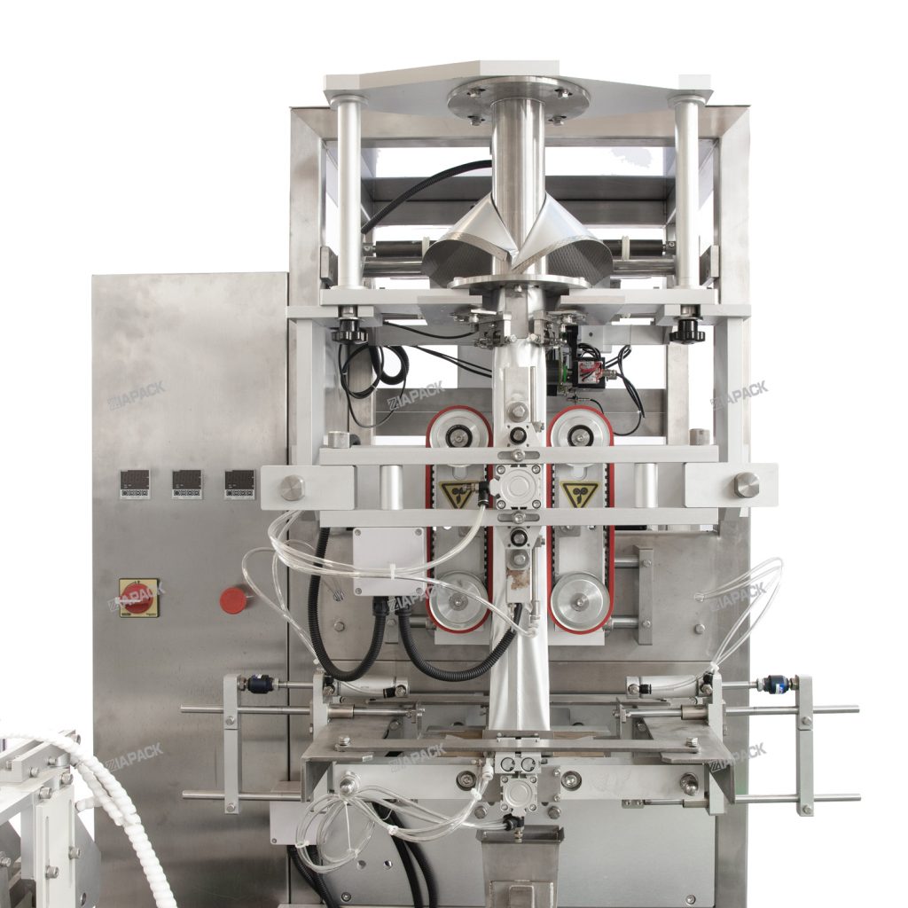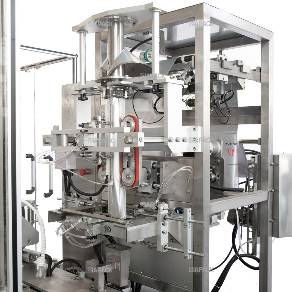 该机器包括一套ZL420立式制袋包装封口机,一套ZLA2000螺旋计量机,一套ZL100V2双真空室包装机,一套输出输送机。机器具有制袋,产品填充,袋子清洁和抽真空的功能。可以选择热转印打码机,该机更适用于在咖啡砖真空袋上进行日期编码。该机器广泛用于包装食品,药品,化学品和其他粉末或小颗粒产品。例如咖啡粉,酵母粉,小麦粉等。整机采用内抽真空产品。真空度非常高,包装速度非常快,可以达到8包/分钟。成品非常漂亮,保质期长。
