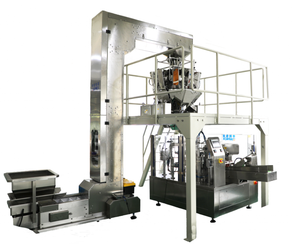 旋转袋式包装机 不同剂量(如多头秤,螺旋填料,液体填料等)可适用于颗粒,粉末,液体,糊状物等的自动包装。不同种类的产品配有预制立式拉链袋等。