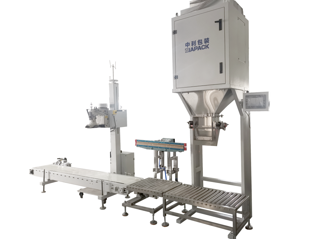 手动袋放置→自动灌装→自动称重→自动袋子输送→自动袋子缝制/手动辅助密封。