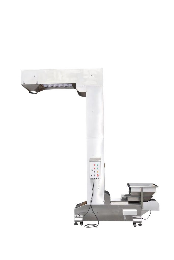 该电梯用于膨化食品,其他颗粒状,块状材料的传输。适用于各种易碎,不易碎的物料提升机,如薯片,虾饼,脆米,各种五金,医药,化工原料,粮食饲料,陶瓷原料。